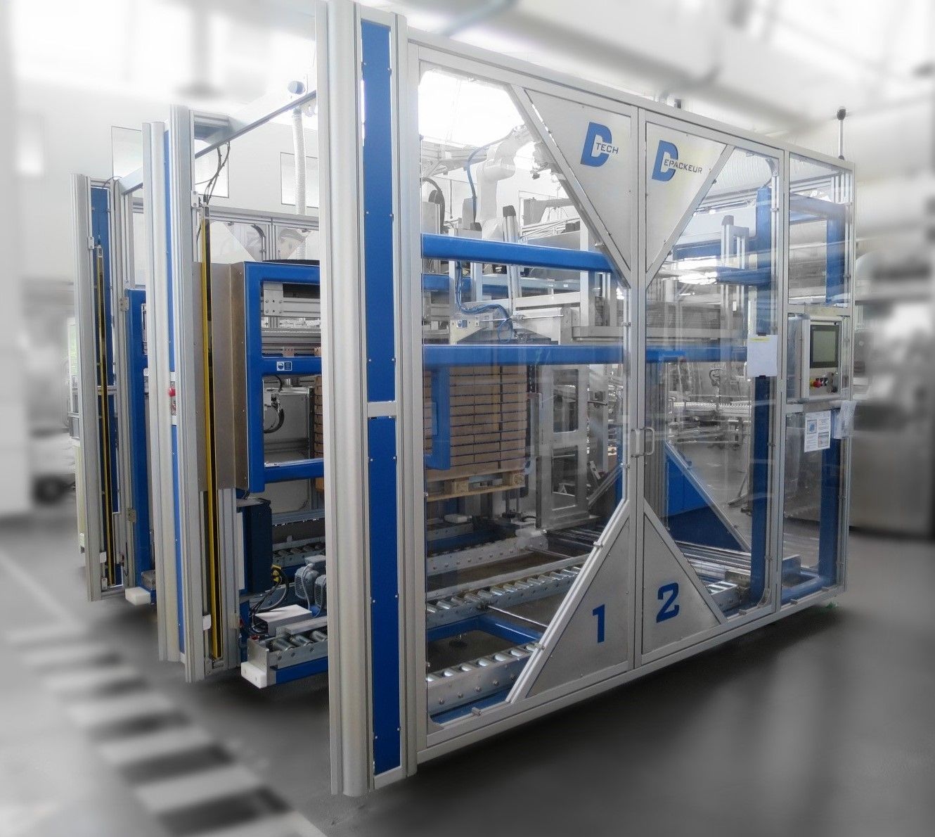 • Jusqu'à 120 cps/min • Évacuation autonome des barquettes, palettes et intercalaires • Picking par Robot Scara et Vision Industrielle